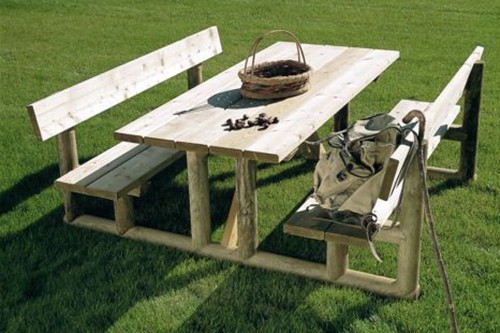 - bestehend aus 1 Tisch und 2 Bänke